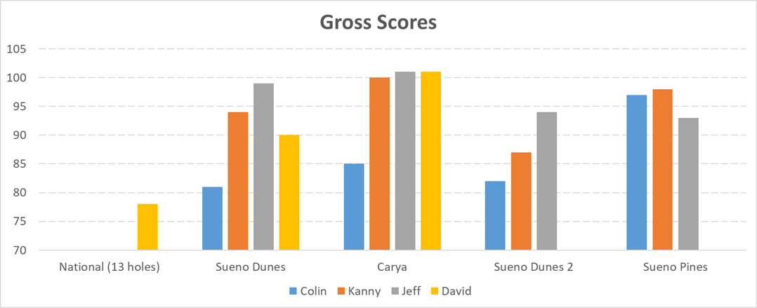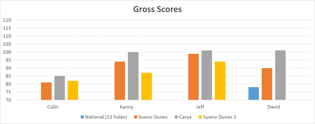 | National (13 holes) | Sueno Dunes | Carya | Sueno Dunes 2 | Sueno Pines | Total | |||