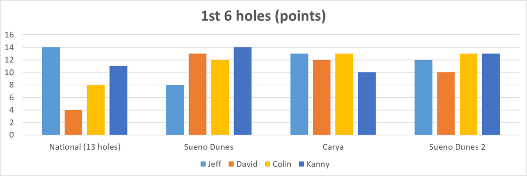| 1st | National (13 holes) | Sueno Dunes | Carya | Sueno Dunes 2 | Sueno Pines | Total | ||||||||||||||